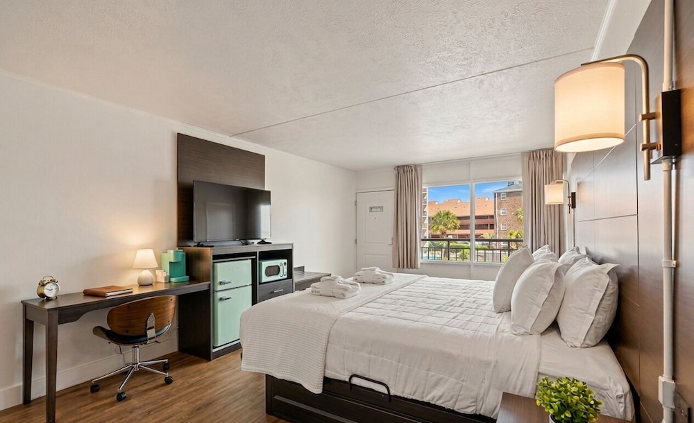 When you stay at Mermaid Inn in Myrtle Beach, you'll be on the beach, a 1-minute drive from Myrtle Beach Beaches and 6 minutes from Broadway at the Beach. This hotel is 3.4 mi (5.5 km) from Myrtle Beach Boardwalk and 3.1 mi (5 km) from Myrtle Beach Convention Center. Make yourself at home in one of the 57 guestrooms featuring refrigerators and flat-screen televisions. Complimentary wireless internet access keeps you connected, and cable programming is available for your entertainment. Private bathrooms with shower/tub combinations feature complimentary toiletries and hair dryers. Conveniences include safes and desks, as well as phones with free local calls. Distances are displayed to the nearest 0.1 mile and kilometer.