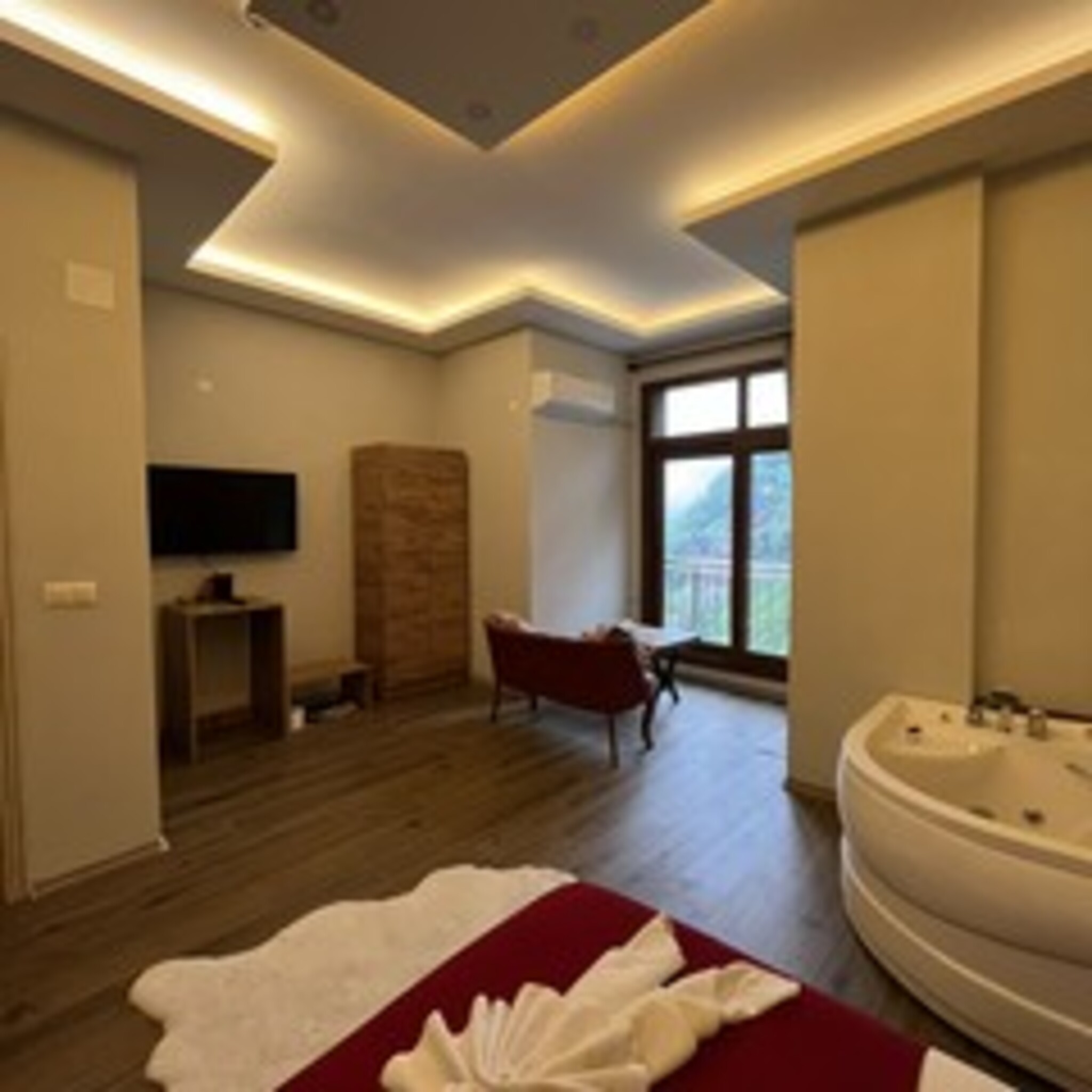 Our facility is located on the Ayder Plateau road, the natural wonder of Rize, in a zero location to Storm Creek. We offer you an unforgettable accommodation experience with our location intertwined with nature, comfortable rooms and warm hospitality. We have a private, free parking lot for our guests. There are 3 King Honeymoon Suites 3 Double Family Suites 3 Deluxe Standard Suite Rooms 2 Deluxe Standard Rooms 1 Standard Room with Balcony in our facility which consists of 12 rooms in total. We offer a comfortable dining experience in all seasons with automatic glass system and air conditioning in our restaurant. In addition, we have activity opportunities such as barbecue, swing, rafting and zipline in our 245 m2 wide, zero to Storm Creek common use area. You can enjoy starting your day with a delicious breakfast prepared with natural products by the river.