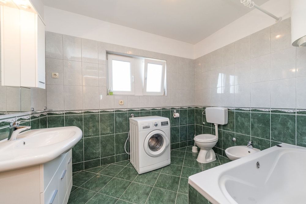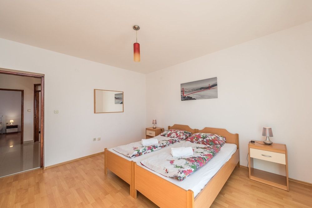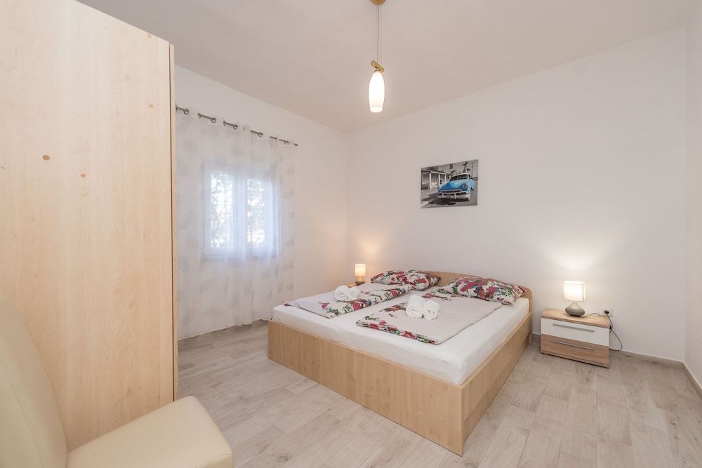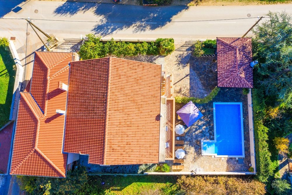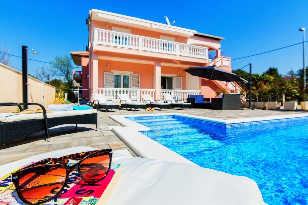 Enjoy a memorable vacation in the romantic coastal town of Bibinje in Southern Croatia, not far from the Adriatic Sea and the picturesque town of Zadar.The duplex holiday house with a stunning open-air pool and a private garden is absolutely gorgeous. Its serene environment coupled with modern amenities transports the guests into a world of luxury, elegance and refinement. Each floor has a spacious terrace where guests can enjoy their morning tea to kick start their day or simply laze around basking in the sun. There is also a gazebo with a BBQ where guests can dine after a refreshing swim in the pool. There are loungers and a sitting area under the parasol by the pool for guests to unwind. This six-bedroom house is ideal for a large family or a group of 12 guests. There are two living rooms (one on each floor) in the house with a modern, open layout. In both the living rooms, there are a set of sofas in the sitting area, a flat-screen TV, a dining setup and an open kitchen. For easy meal preparations, guests have access to the coffee machine, dishwasher, oven, microwave, toaster, cooker hob, electric kettle and fridge. SleepingBedroom 1: The lovely bedroom with an attached balcony has a double bed and a wardrobe.Bedroom 2: The bedroom with plenty of natural light is furnished with a pair of single beds. Bedroom 3: The bedroom has a double bed. Bedroom 4: The spacious bedroom has a double bed and a wardrobe. Bedroom 5: The beautiful room has a metallic double bed and a wardrobe. Bedroom 6: The pretty room has a double bed and a wardrobe. BathroomsBathroom 1: The spacious bathroom has a bath with a shower, a washing machine and a WC. Bathroom 2: The compact bathroom has a shower, a washbasin and a WC. Additional Child friendly Private Parking Space Iron and ironing board Laundry Facilities Fireplace Free Internet Air conditioned. LocationThe house is perfect for a relaxing holiday with friends and family. The coastal town of Bibinje is well known for its well-kept and nice beaches while the marina offers diving courses and one-day boat trips to interesting destinations nearby. The sea is only 700 meters from here. The house is also well served. It has a restaurant, shop and supermarket within easy walking distance. Places of interest include its five Catholic churches, beach activities like swimming, diving, surfing etc., day trips to five national parks or simply find a cafe at one of the beaches and watch the sea waves hitting the sandy beach. Guests can easily drive to the metropolis of Zadar (16 minutes) where they can enjoy the immensely popular Sea Organ, feast on the gastronomical delights, admire religious and cultural artifacts, taste its signature drink and learn to surf. The towns proximity to beautiful beaches and to Zadar makes it one of the most sought destinations in this part of Croatia. The nearest airport is hardly 10 kilometers from the holiday house.