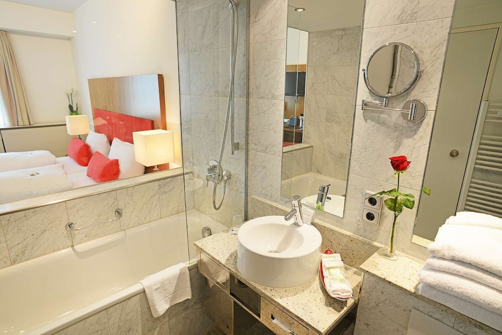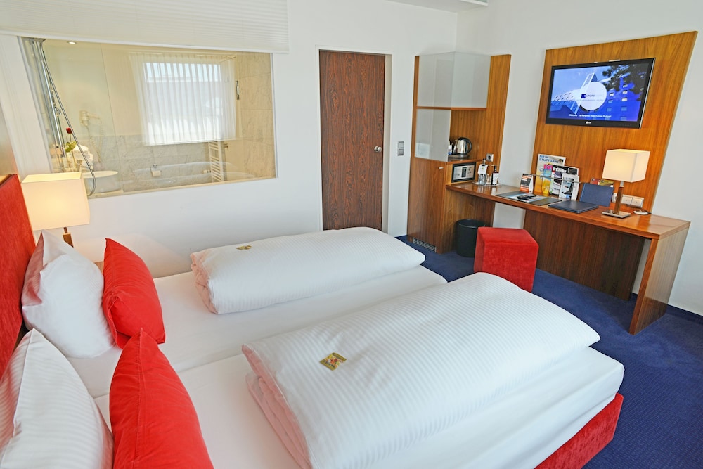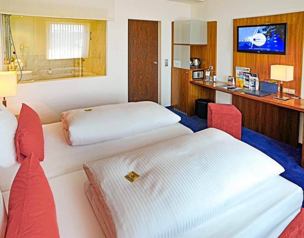 With a stay at Plaza Kongresshotel Europe Stuttgart in Stuttgart (Feuerbach), you'll be within a 5-minute drive of Wilhelma Zoo and Milaneo. This upscale hotel is 2.5 mi (4.1 km) from Porsche Museum and 3.9 mi (6.3 km) from Mercedes Benz Museum. Make yourself at home in one of the 145 individually decorated guestrooms, featuring minibars and flat-screen televisions. Complimentary wireless internet access keeps you connected, and satellite programming is available for your entertainment. Private bathrooms with bathtubs or showers feature complimentary toiletries and hair dryers. Conveniences include phones, as well as safes and desks. Distances are displayed to the nearest 0.1 mile and kilometer.