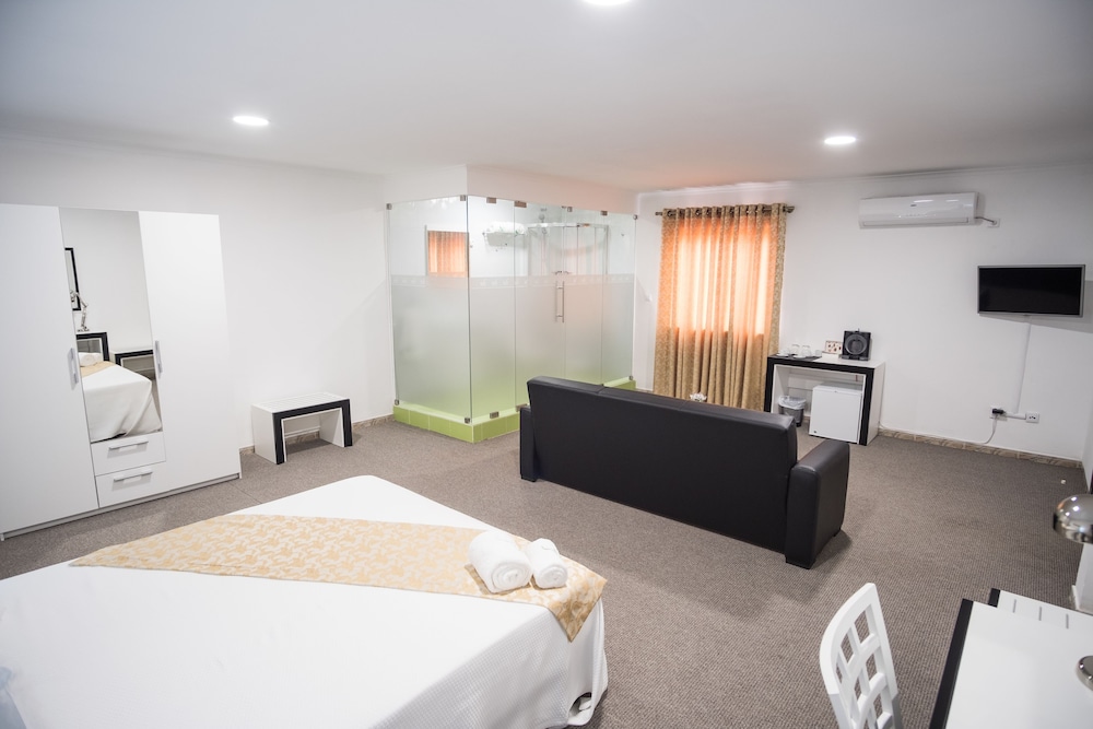 With a stay at SH Boutique Hotel in São Tomé, you'll be a 2-minute walk from Cloçon Téla Chocolate Factory and 12 minutes by foot from Cathedral of São Tomé. This hotel is 1 mi (1.5 km) from Estadio Nacional 12 de Julho and 1.3 mi (2.1 km) from São Sebastião Museum. Make yourself at home in one of the 15 air-conditioned rooms featuring minibars and flat-screen televisions. Complimentary wireless internet access keeps you connected, and satellite programming is available for your entertainment. Private bathrooms with showers feature complimentary toiletries and bathrobes. Conveniences include safes and desks, and housekeeping is provided daily. Distances are displayed to the nearest 0.1 mile and kilometer.