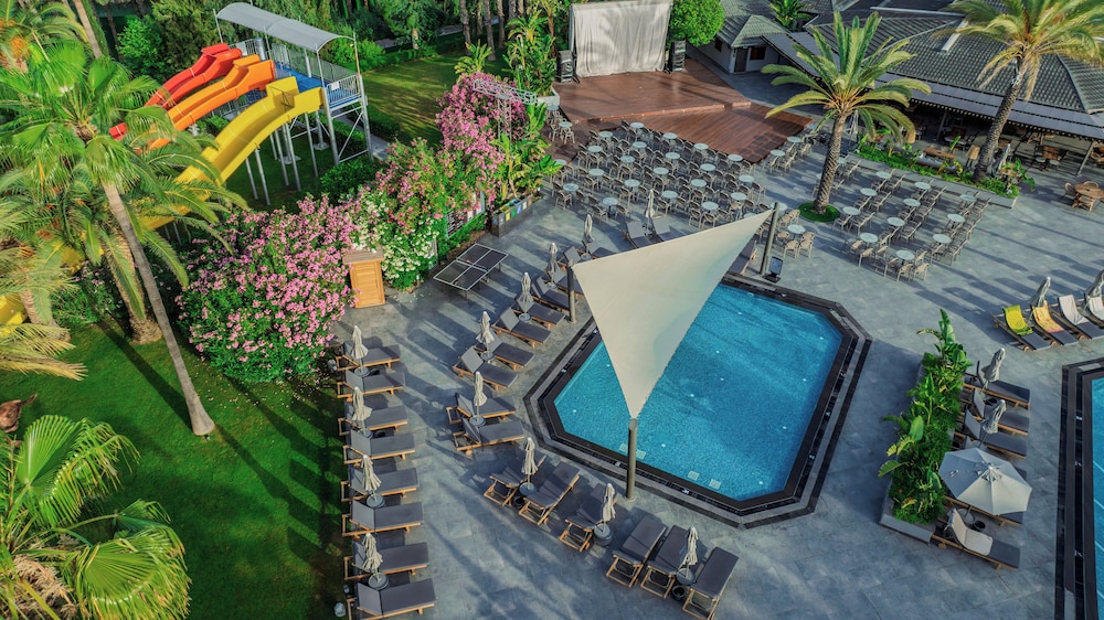 Located in Manavgat, Miramare Beach Hotel is in the historical district, a 1-minute drive from Side West Beach and 7 minutes from Side Agora. This all-inclusive hotel is 4.1 mi (6.5 km) from Roman Side Theater and 4.2 mi (6.7 km) from Side East Beach. Treat yourself to a stay in one of the 267 individually decorated guestrooms, featuring rooftop private hot tubs and LCD televisions. Rooms have private furnished balconies or patios. Complimentary wireless internet access keeps you connected, and satellite programming is available for your entertainment. Conveniences include phones, as well as safes and desks. Distances are displayed to the nearest 0.1 mile and kilometer.