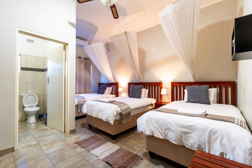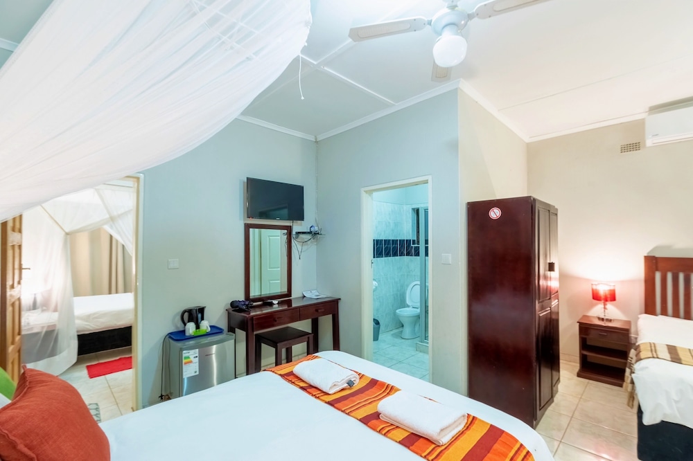 With a stay at Dzimbahwe Guest Lodge in Victoria Falls, you'll be within a 5-minute drive of Victoria Falls and Zambezi National Park. This guesthouse is 2.3 mi (3.8 km) from Victoria Falls National Park and 2.8 mi (4.5 km) from David Livingstone Statue. Make yourself at home in one of the 6 air-conditioned rooms featuring plasma televisions. Complimentary wireless internet access keeps you connected, and satellite programming is available for your entertainment. Private bathrooms with bathtubs or showers feature complimentary toiletries and hair dryers. Conveniences include safes and desks, and housekeeping is provided daily. Distances are displayed to the nearest 0.1 mile and kilometer.